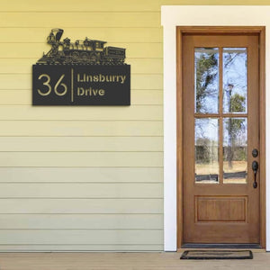 Railspirit Personalized Train Metal Address Sign House Number Hanging Address Plaque Yard Sign Outdoor Sign
