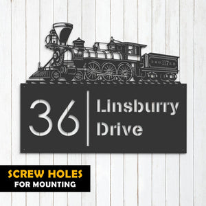 Railspirit Personalized Train Metal Address Sign House Number Hanging Address Plaque Yard Sign Outdoor Sign Garden Stake