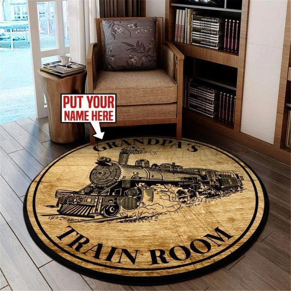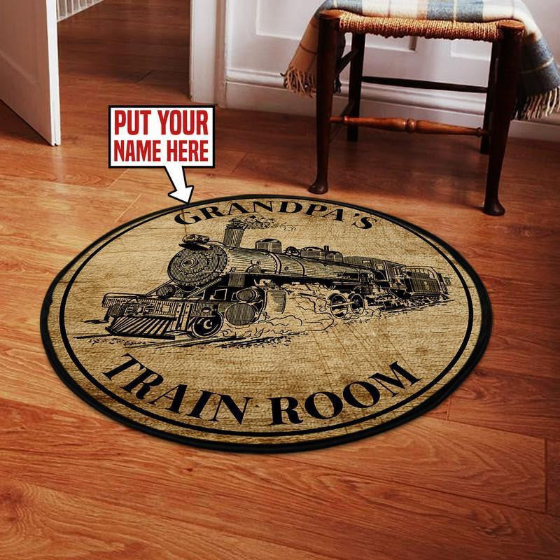 Railspirit Personalized Train Room Steam Locomotive Round Mat Round Floor Mat Room Rugs Carpet Outdoor Rug Washable Rugs