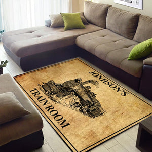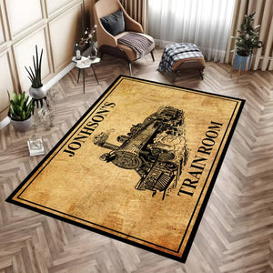 Railspirit Personalized Train Room Steam Locomotive Vintage Area Rug