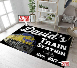 Railspirit Personalized Train Station Room Railroad Area Rug Gift Idea For Train Lovers