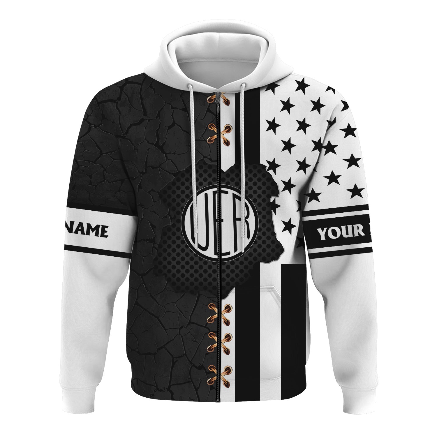 Railspirit Personalized Union Electric Railway Hoodie American Flag with Crack Effect Train Zip Up Hoodie
