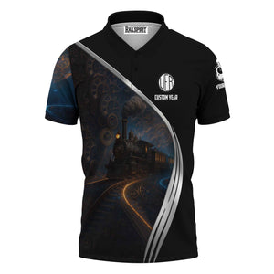 Railspirit Personalized Union Electric Railway Polo Shirt Steampunk Locomotive with Custom Year Train Shirt