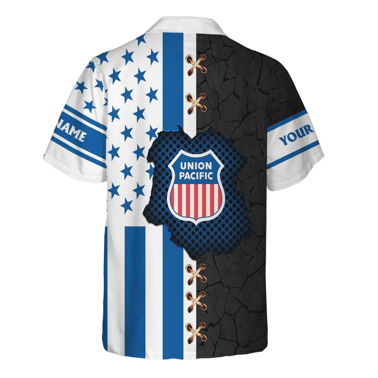 Railspirit Personalized Union Pacific Railroad Hawaiian Shirt American Flag with Crack Effect Big Boy Train Shirt