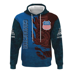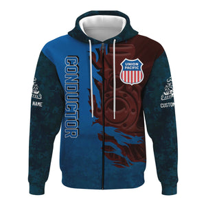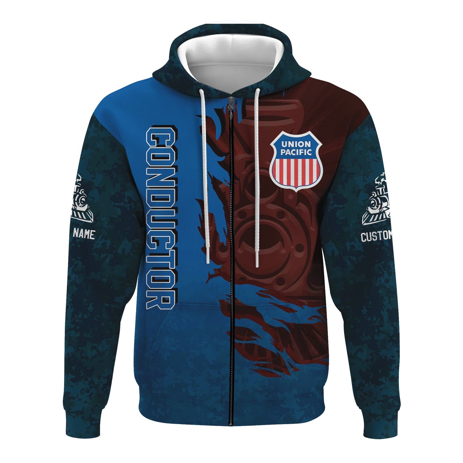 Railspirit Personalized Union Pacific Railroad Hoodie Blazing Style with Custom Position Big Boy Train Zip Up Hoodie