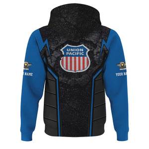 Railspirit Personalized Union Pacific Railroad Hoodie Cracked Metal Design Big Boy Train Zip Up Hoodie for Rail Enthusiasts