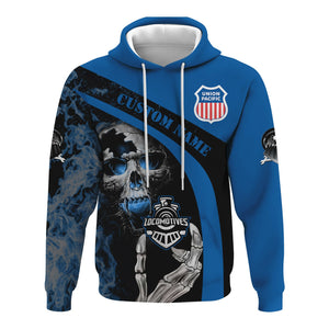 Railspirit Personalized Union Pacific Railroad Hoodie Flame Skull Design Big Boy Train Zip Up Hoodie for Locomotive Fans