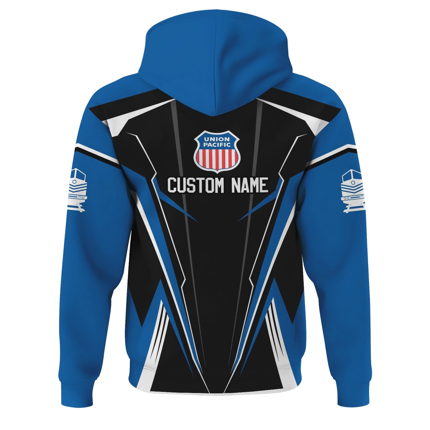 Railspirit Personalized Union Pacific Railroad Hoodie Lightning-Edge Design Big Boy Train Zip Up Hoodie For Railroad Lovers