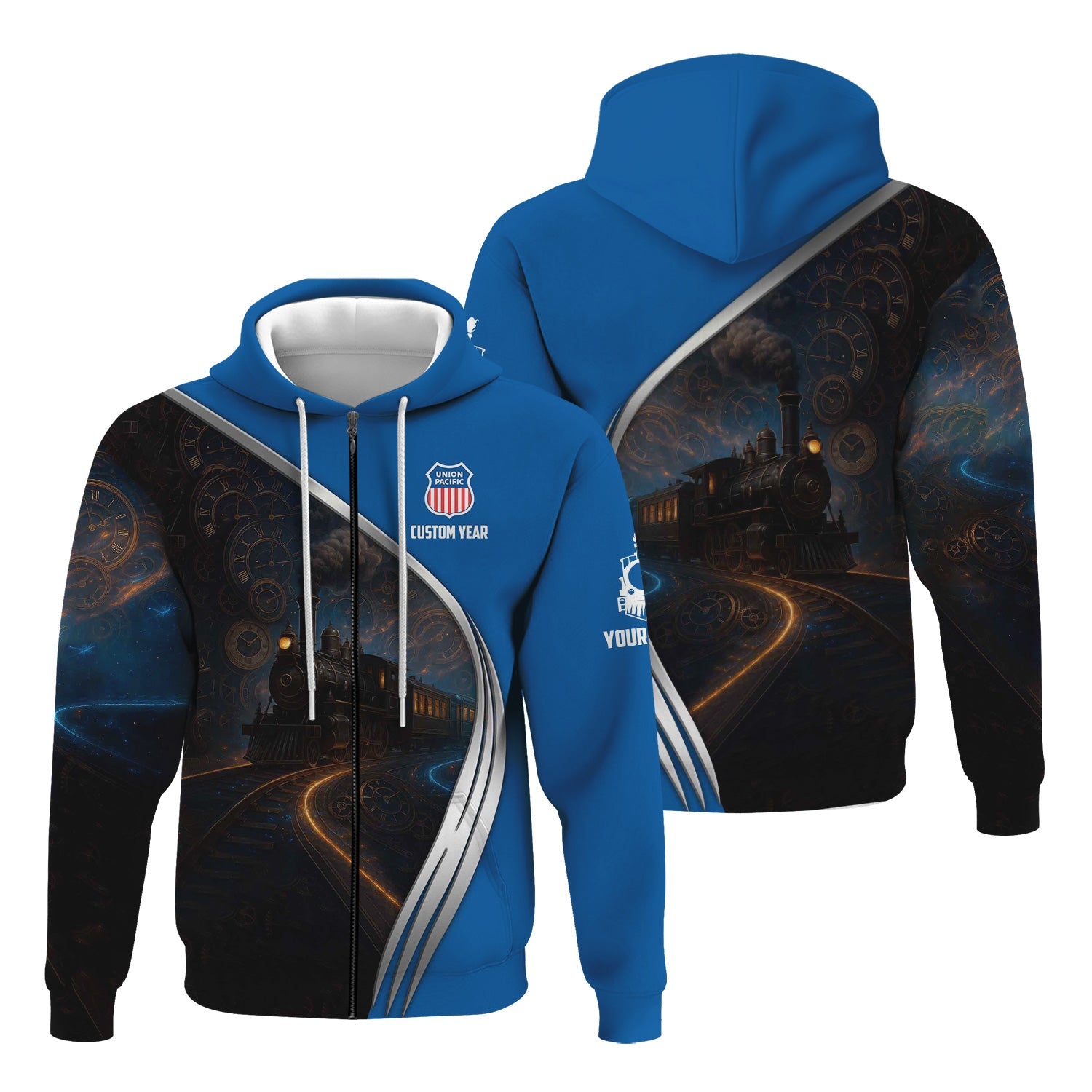 Railspirit Personalized Union Pacific Railroad Hoodie Steampunk Locomotive with Custom Year Big Boy Train Zip Up Hoodie