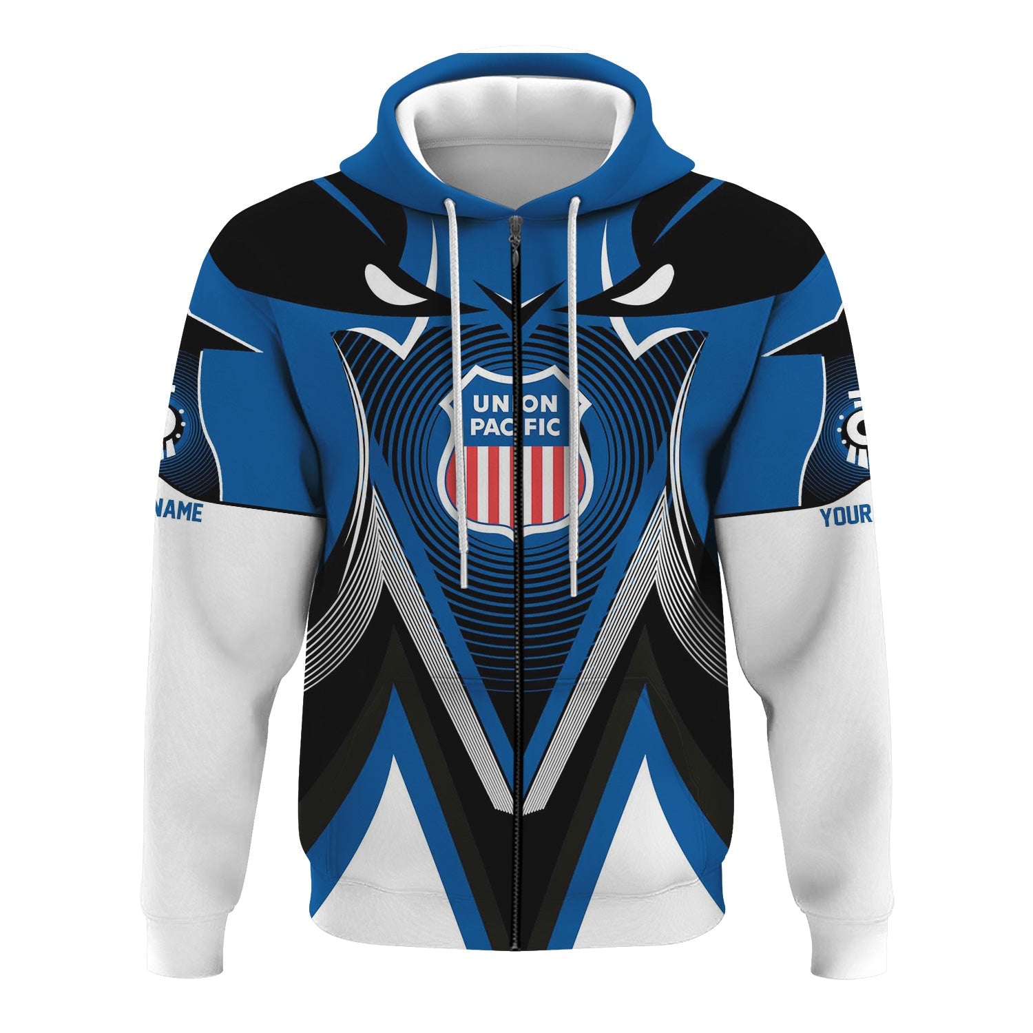Railspirit Personalized Union Pacific Railroad Hoodie Vibrant Graphic Pattern Big Boy Zip Up Hoodie For Train Enthusiasts