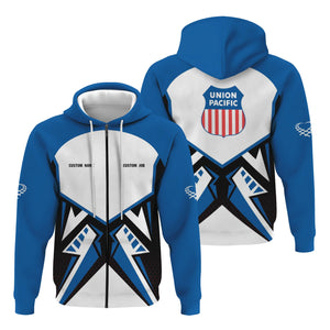 Railspirit Personalized Union Pacific Railroad Hoodie Vibriant Style with Custom Position Big Boy Train Zip Up Hoodie