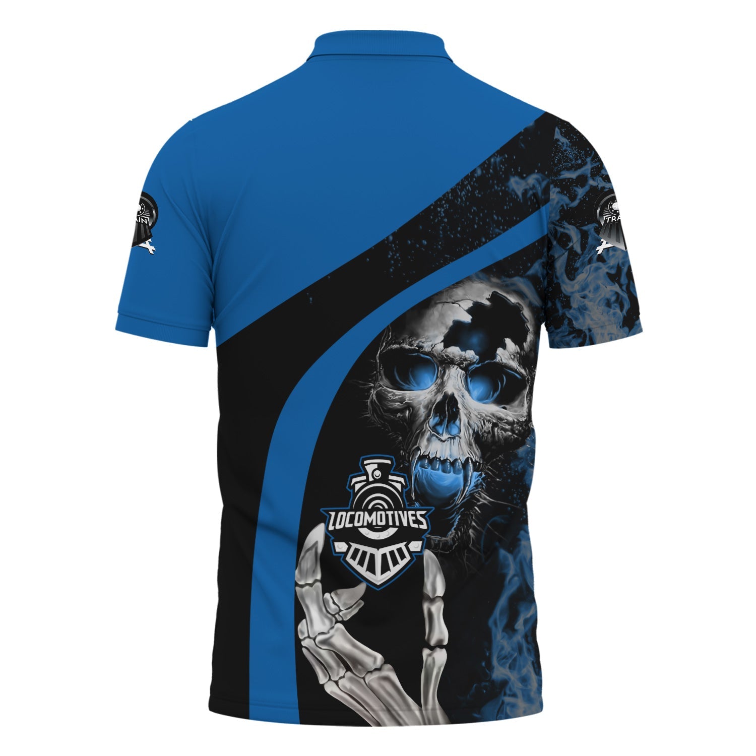 Railspirit Personalized Union Pacific Railroad Polo Shirt Flame Skull Design Big Boy Train Shirt for Locomotive Fans