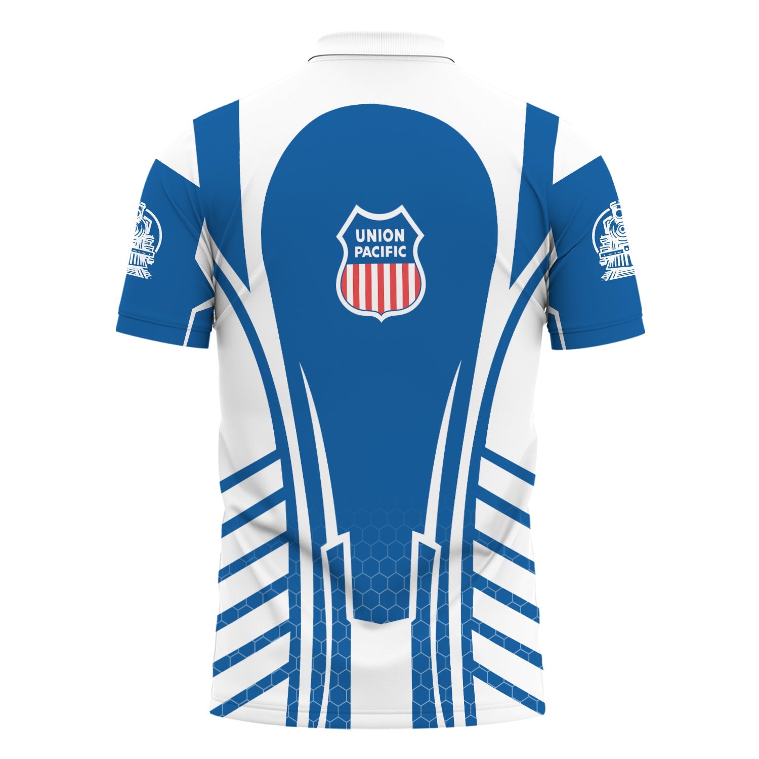 Railspirit Personalized Union Pacific Railroad Polo Shirt Striped Railroad Style Big Boy Train Shirt All Over Print