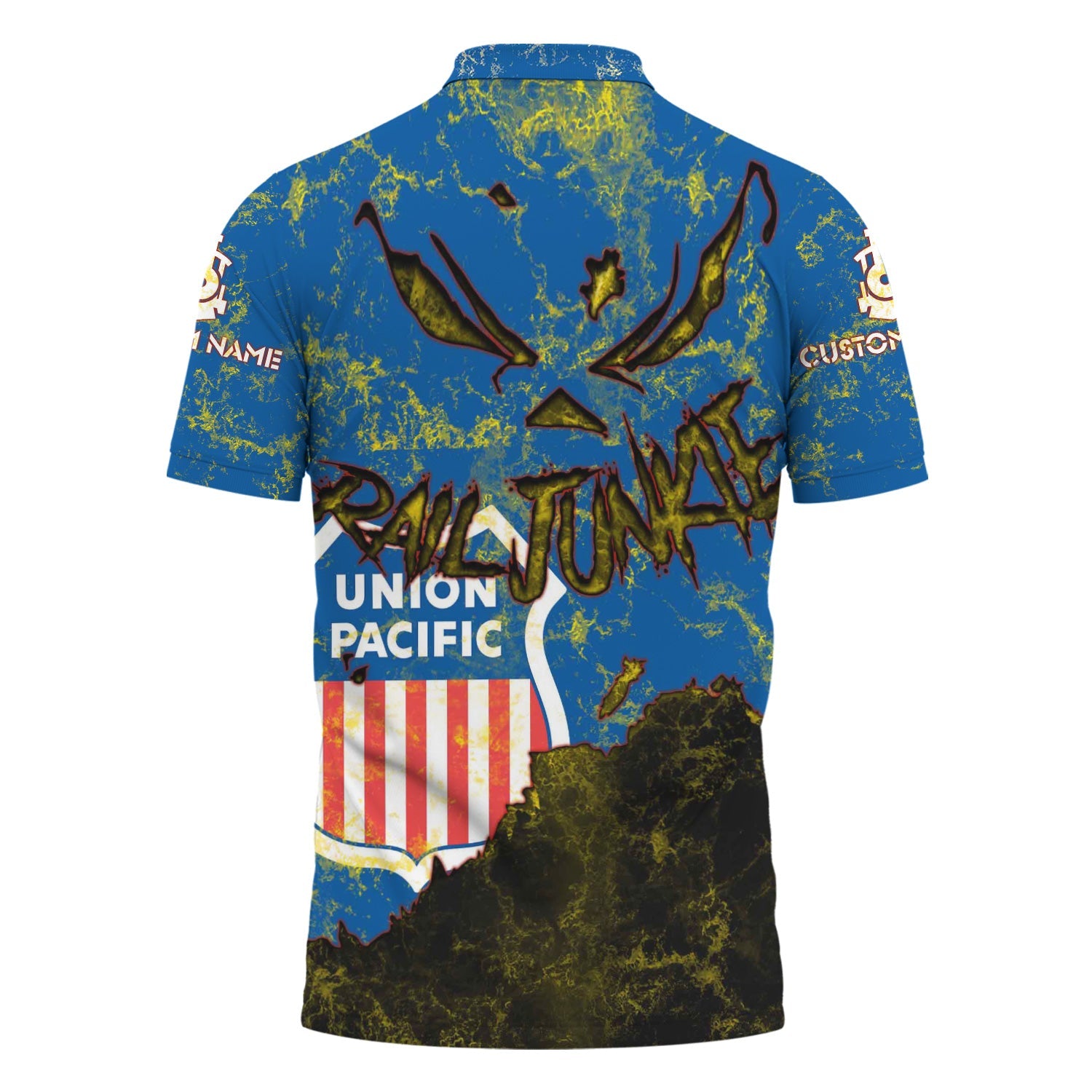 Railspirit Personalized Union Pacific Railroad Polo Shirt Torn Graphic Style Big Boy Train Shirt For Rail Junkie