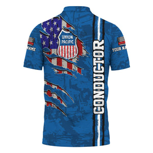 Railspirit Personalized Union Pacific Railroad Polo Shirt USA Flag Claw Art with Custom Job Big Boy Train Shirt