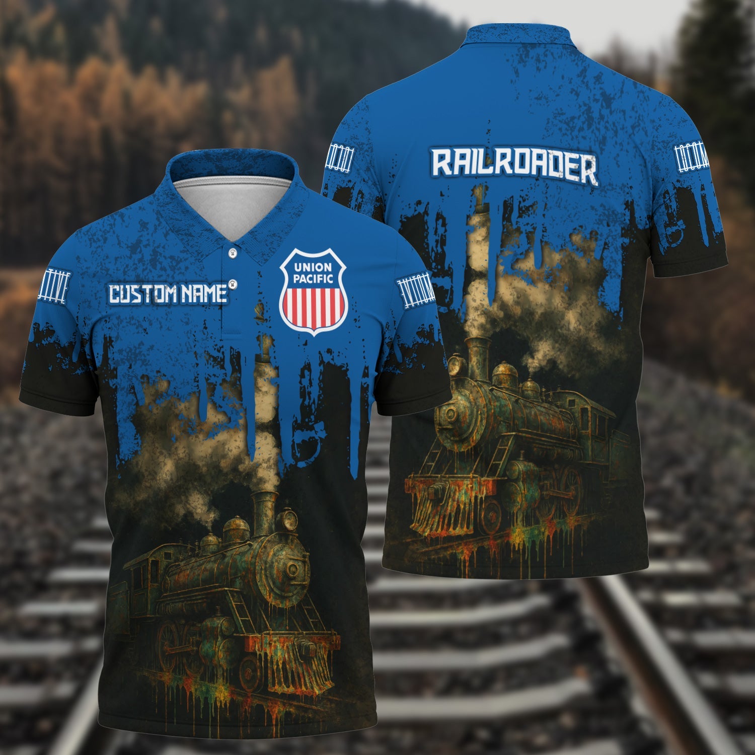 Railspirit Personalized Union Pacific Railroad Polo Shirt Vintage Train Art Style Big Boy Shirt For Locomotive Fans