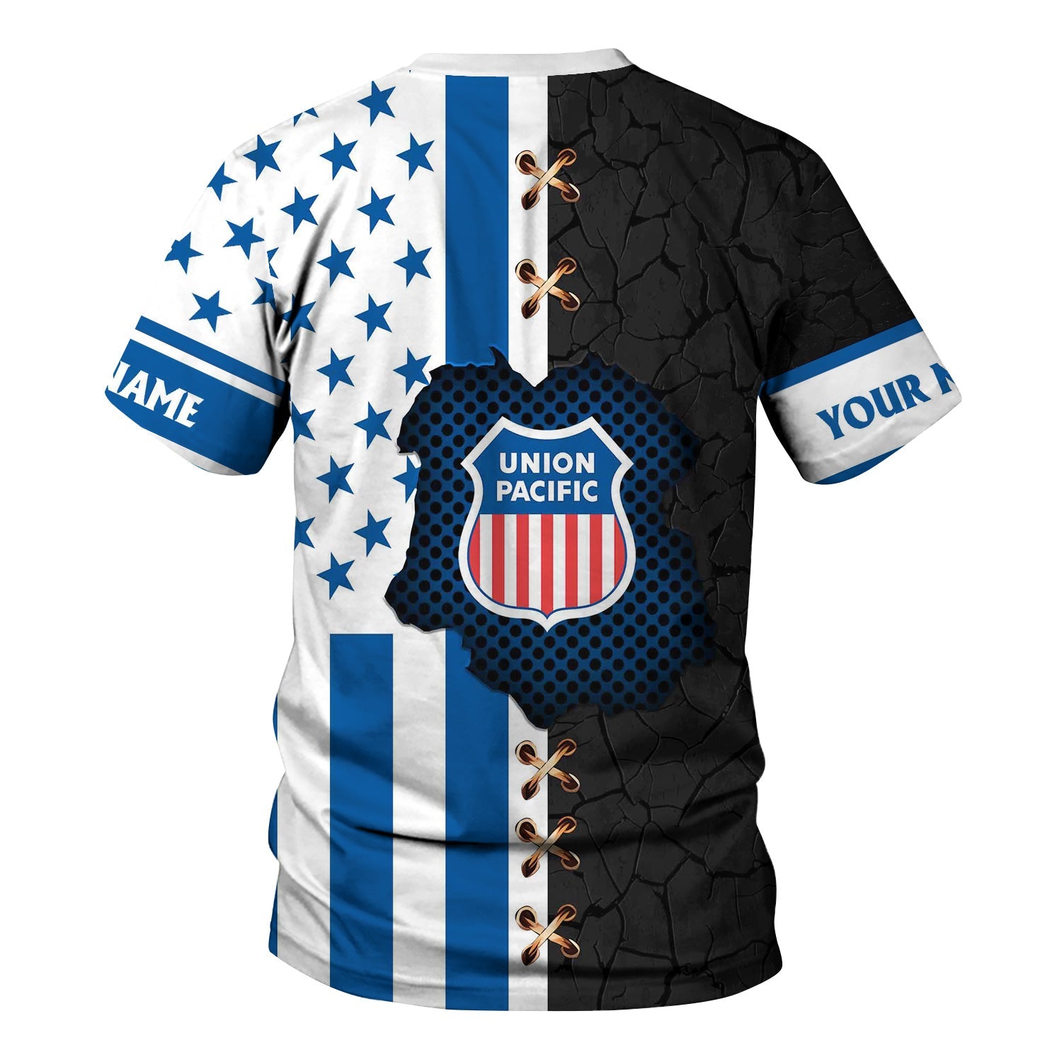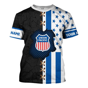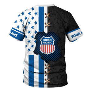 Railspirit Personalized Union Pacific Railroad T-Shirt American Flag with Crack Effect Big Boy Train Shirt