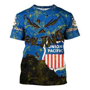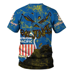 Railspirit Personalized Union Pacific Railroad T-Shirt Torn Graphic Style Big Boy Train Shirt For Rail Junkie