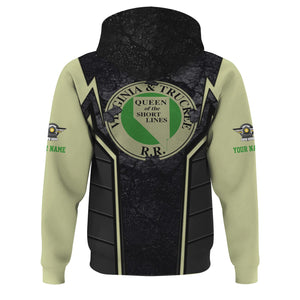 Railspirit Personalized Virginia & Truckee Railroad Hoodie Cracked Metal Design Train Zip Up Hoodie for Rail Enthusiasts