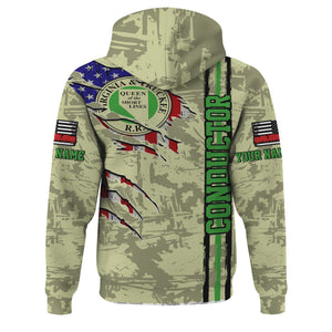 Railspirit Personalized Virginia & Truckee Railroad Hoodie USA Flag Claw Art with Custom Job Train Zip Up Hoodie