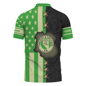 Railspirit Personalized Virginia & Truckee Railroad Polo Shirt American Flag with Crack Effect Train Shirt