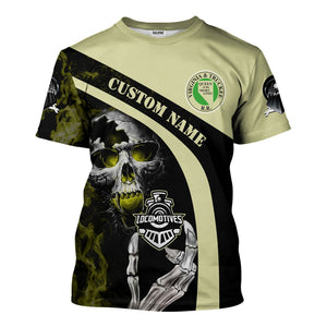 Railspirit Personalized Virginia & Truckee Railroad T-Shirt Flame Skull Design Train Shirt for Locomotive Fans