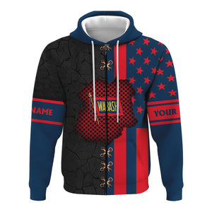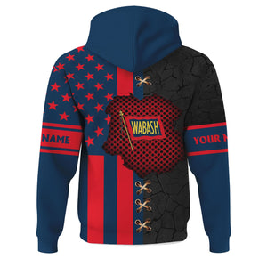 Railspirit Personalized Wabash Railroad Hoodie American Flag with Crack Effect Train Zip Up Hoodie