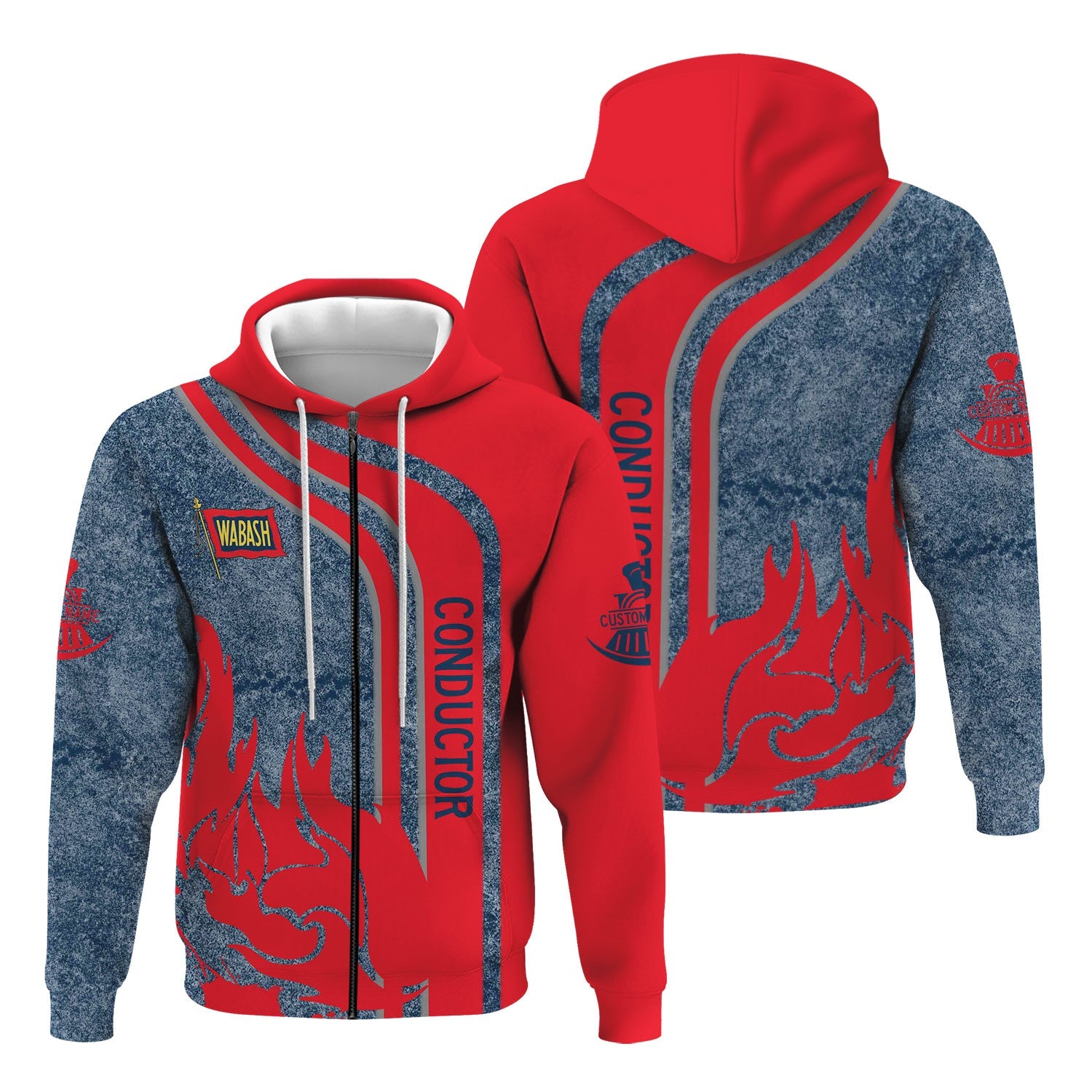 Railspirit Personalized Wabash Railroad Hoodie Flame Design with Custom Job Position Train Zip Up Hoodie