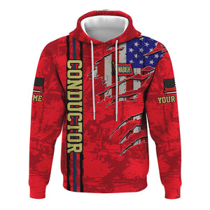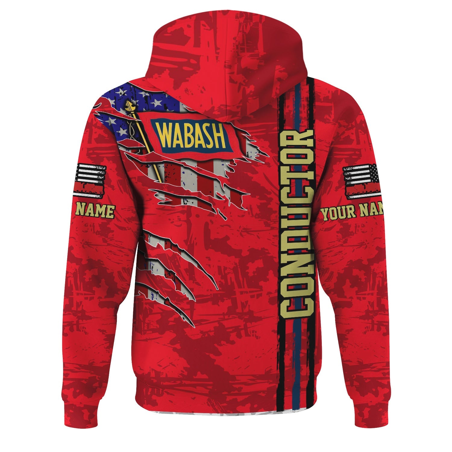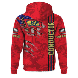 Railspirit Personalized Wabash Railroad Hoodie USA Flag Claw Art with Custom Job Train Zip Up Hoodie