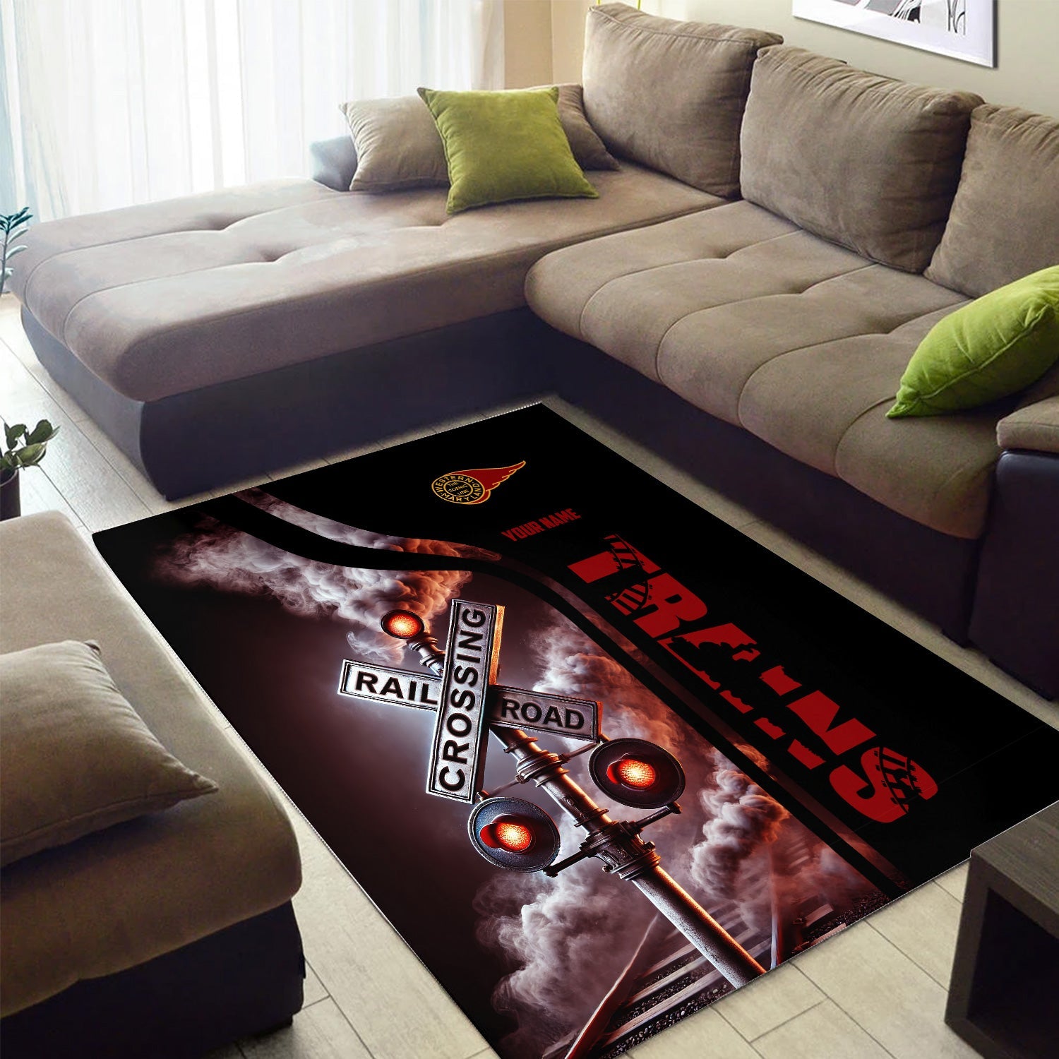 Railspirit Personalized Western Maryland Railway Area Rug Railroad Crossing Sign Rug All Over Print