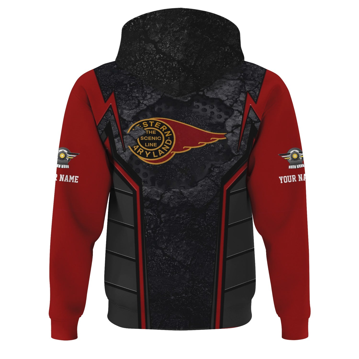 Railspirit Personalized Western Maryland Railway Hoodie Cracked Metal Design Train Zip Up Hoodie for Rail Enthusiasts