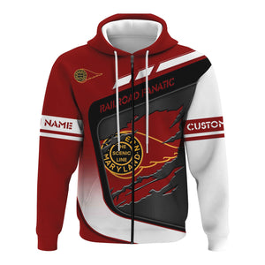 Railspirit Personalized Western Maryland Railway Hoodie Ripped Texture Style Train Zip Up Hoodie For Railroad Fanatic