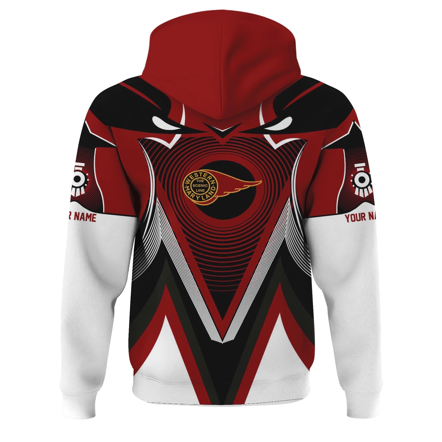 Railspirit Personalized Western Maryland Railway Hoodie Vibrant Graphic Pattern Zip Up Hoodie For Train Enthusiasts