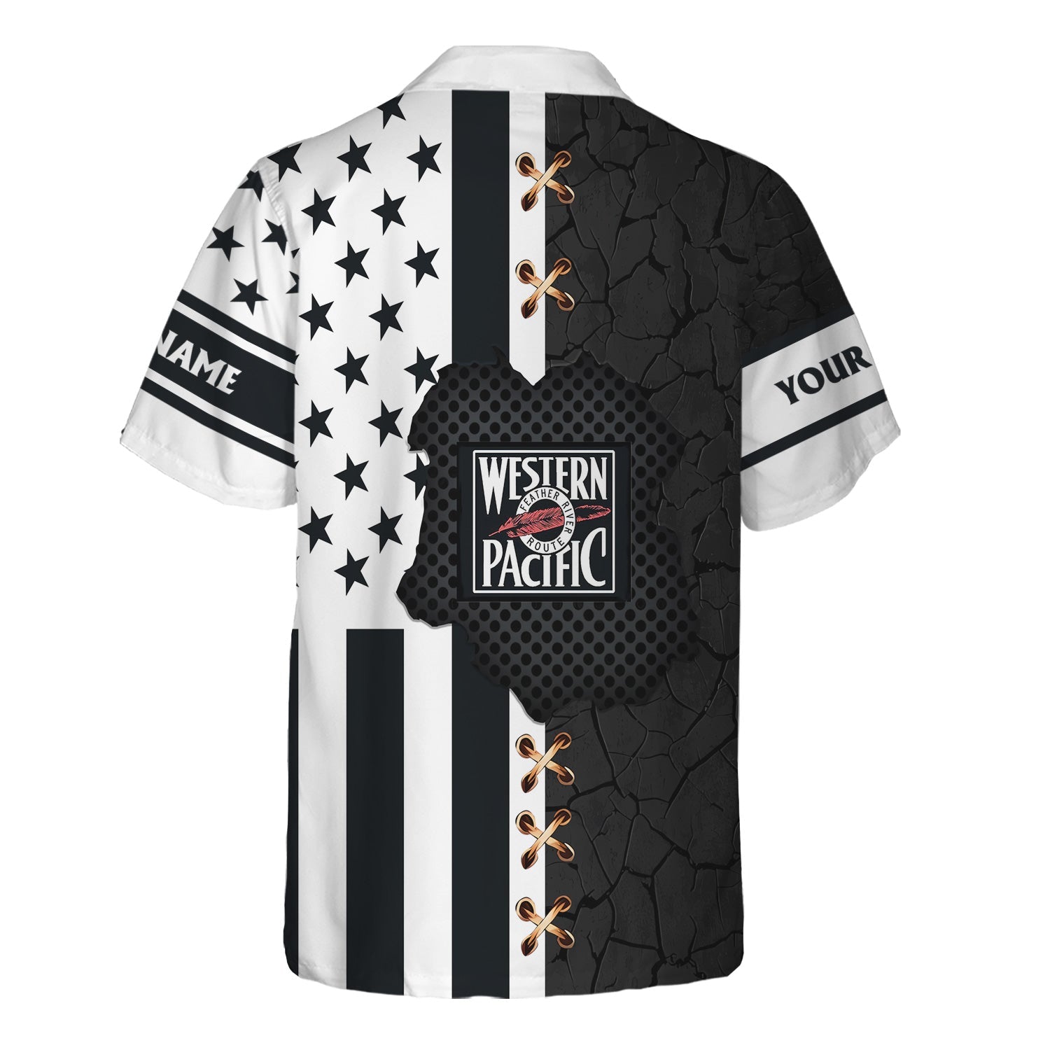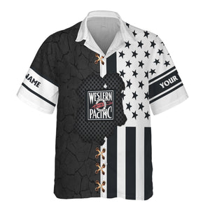 Railspirit Personalized Western Pacific Railroad Hawaiian Shirt American Flag with Crack Effect Train Shirt