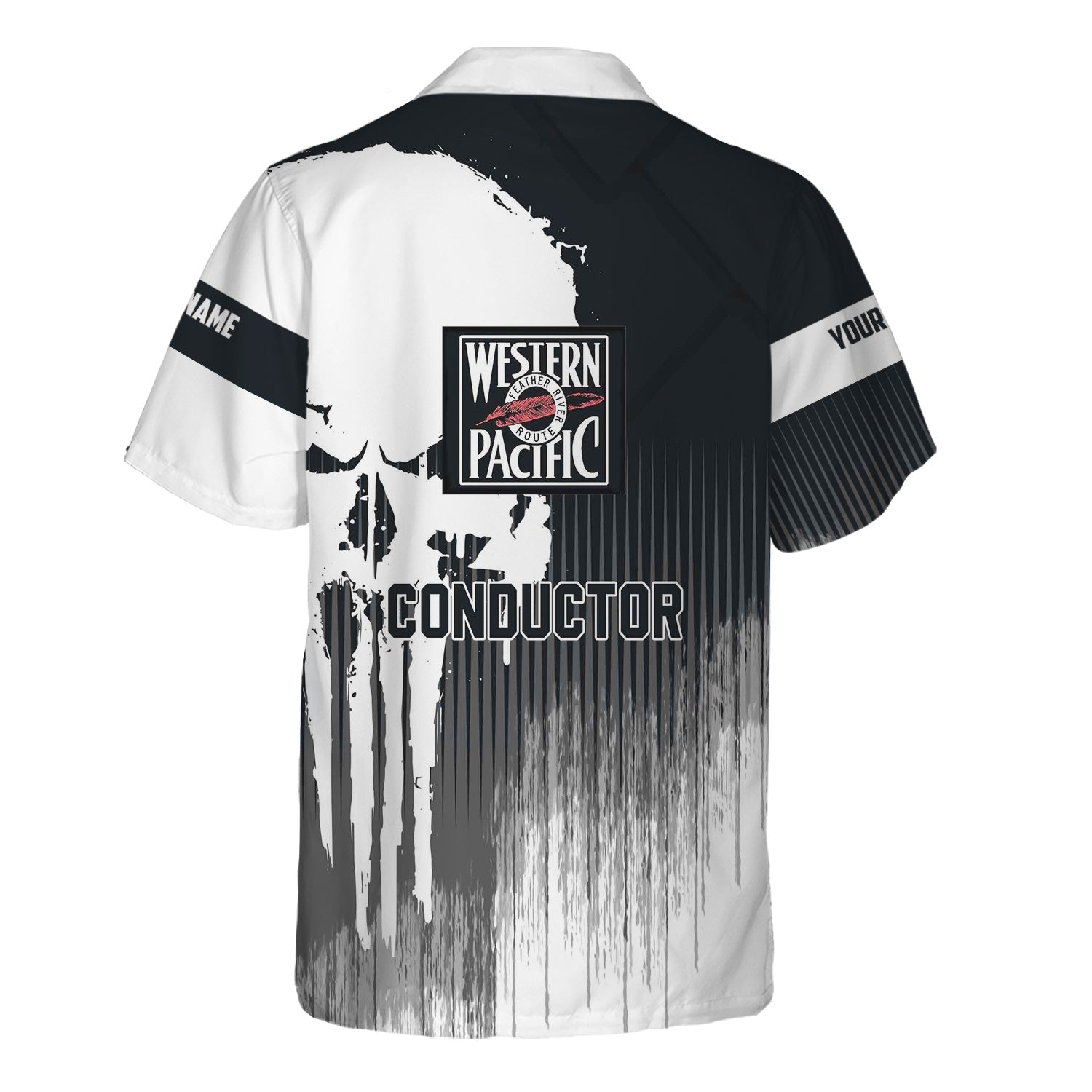 Railspirit Personalized Western Pacific Railroad Hawaiian Shirt Skull Design with Custom Job Train Shirt for Trackhead Crew