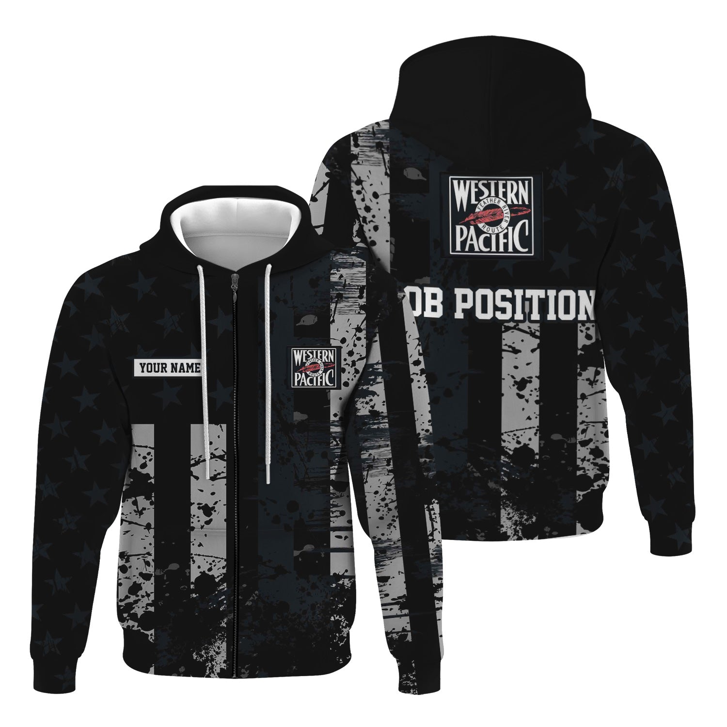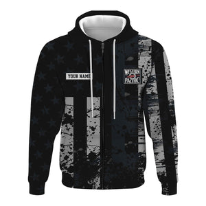 Railspirit Personalized Western Pacific Railroad Hoodie Artistic Paint American Flag Style Train Zip Up Hoodie