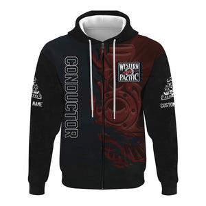 Railspirit Personalized Western Pacific Railroad Hoodie Blazing Style with Custom Position Train Zip Up Hoodie