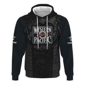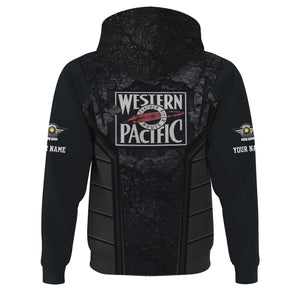 Railspirit Personalized Western Pacific Railroad Hoodie Cracked Metal Design Train Zip Up Hoodie for Rail Enthusiasts
