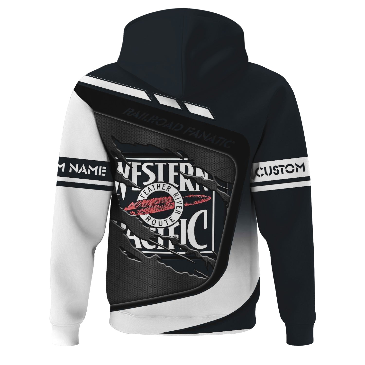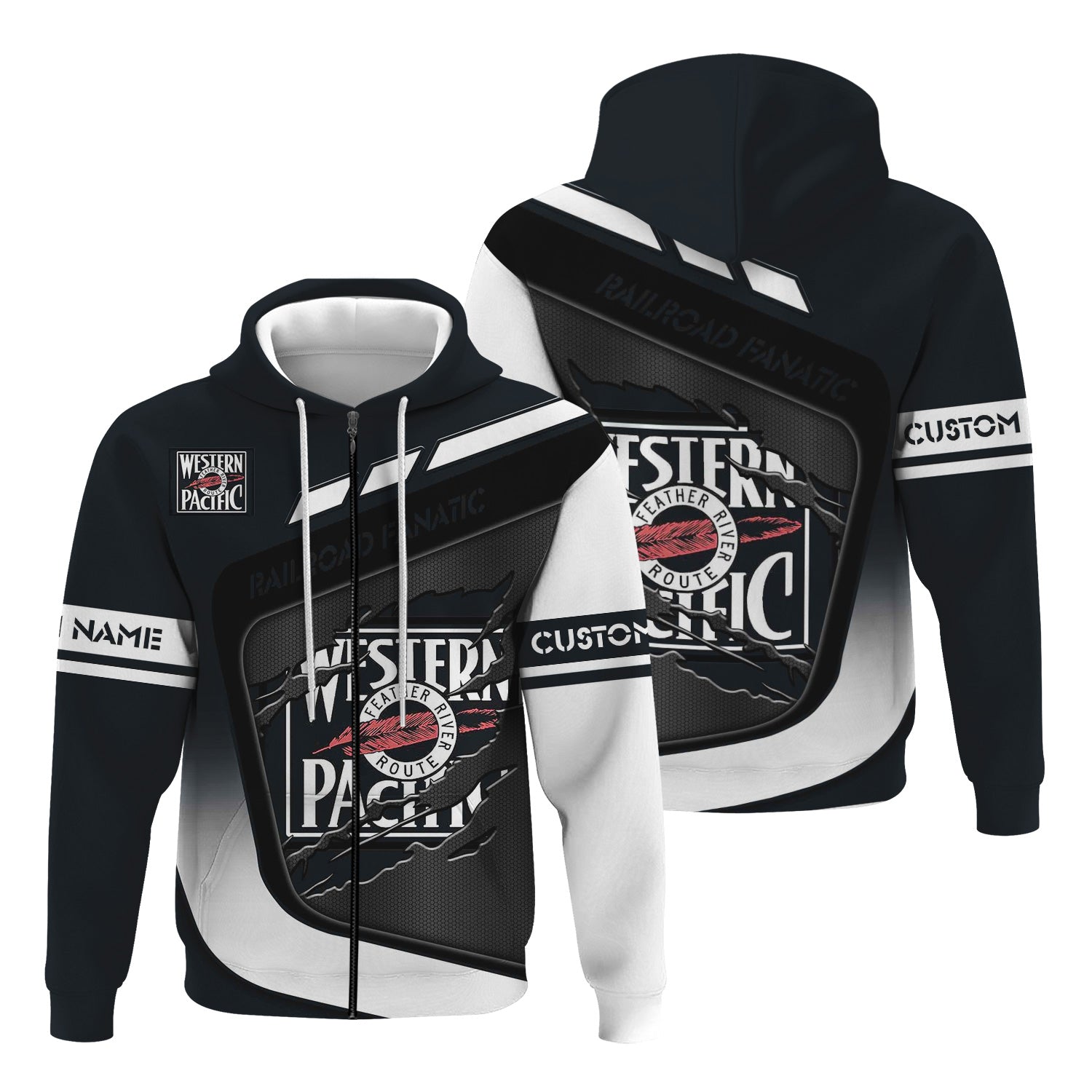 Railspirit Personalized Western Pacific Railroad Hoodie Ripped Texture Style Train Zip Up Hoodie For Railroad Fanatic