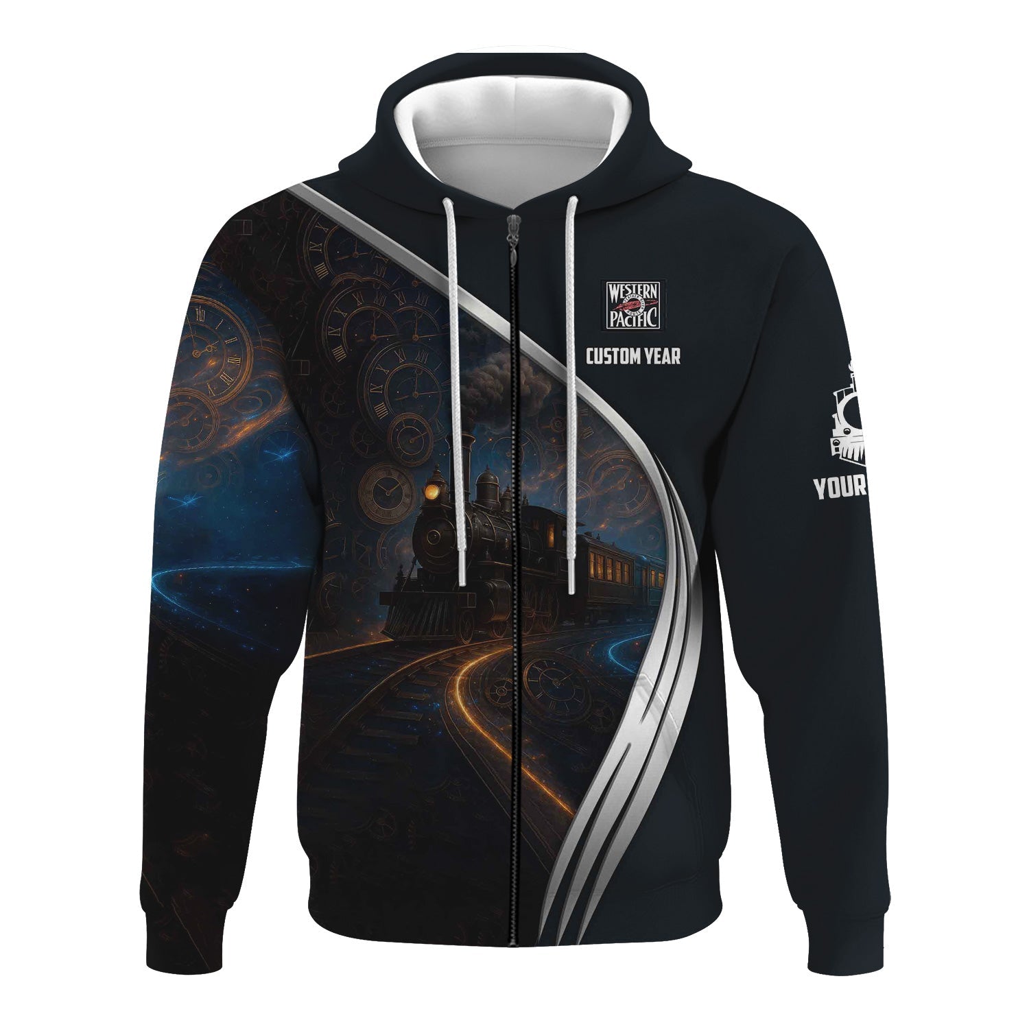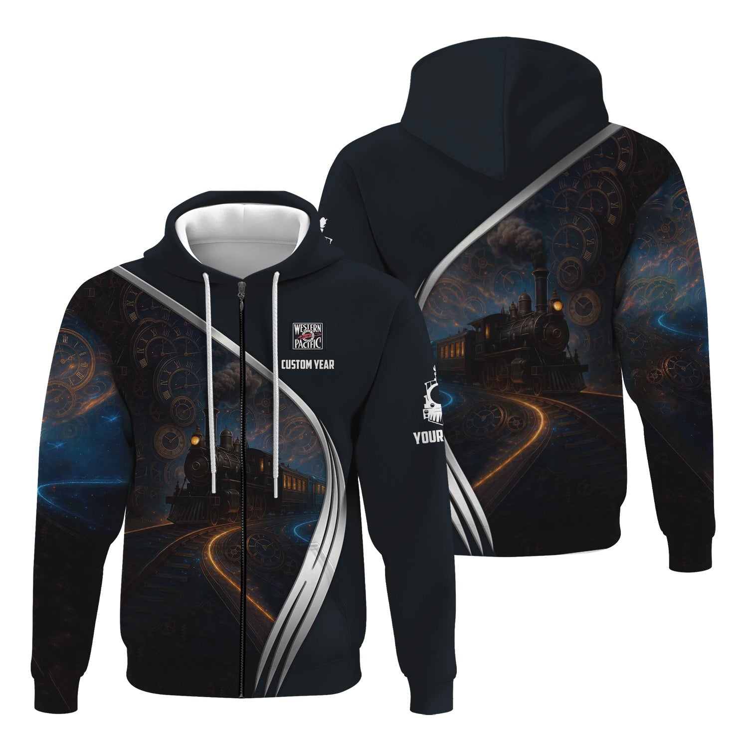 Railspirit Personalized Western Pacific Railroad Hoodie Steampunk Locomotive with Custom Year Train Zip Up Hoodie