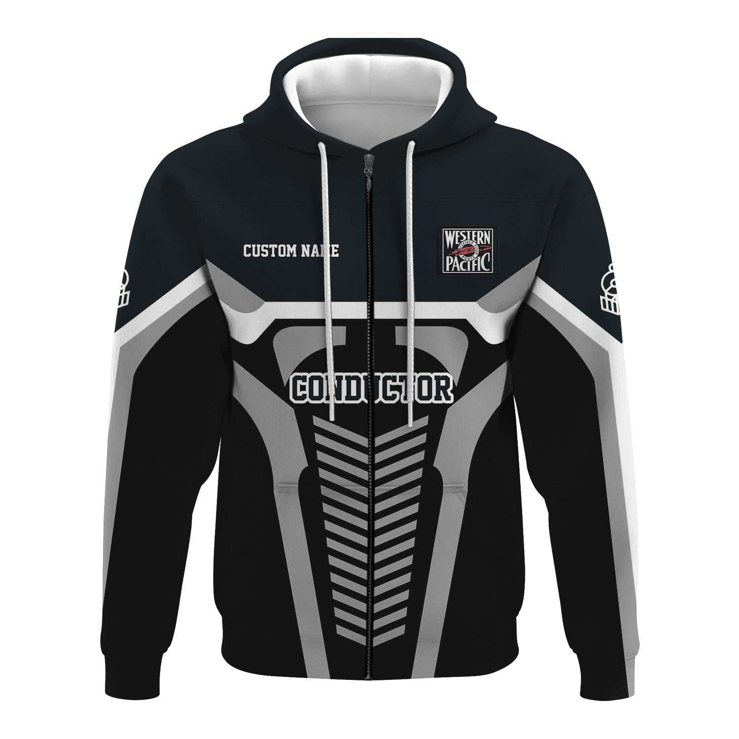 Railspirit Personalized Western Pacific Railroad Hoodie Track-Inspired with Custom Job Position Train Zip Up Hoodie