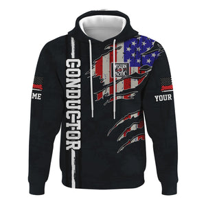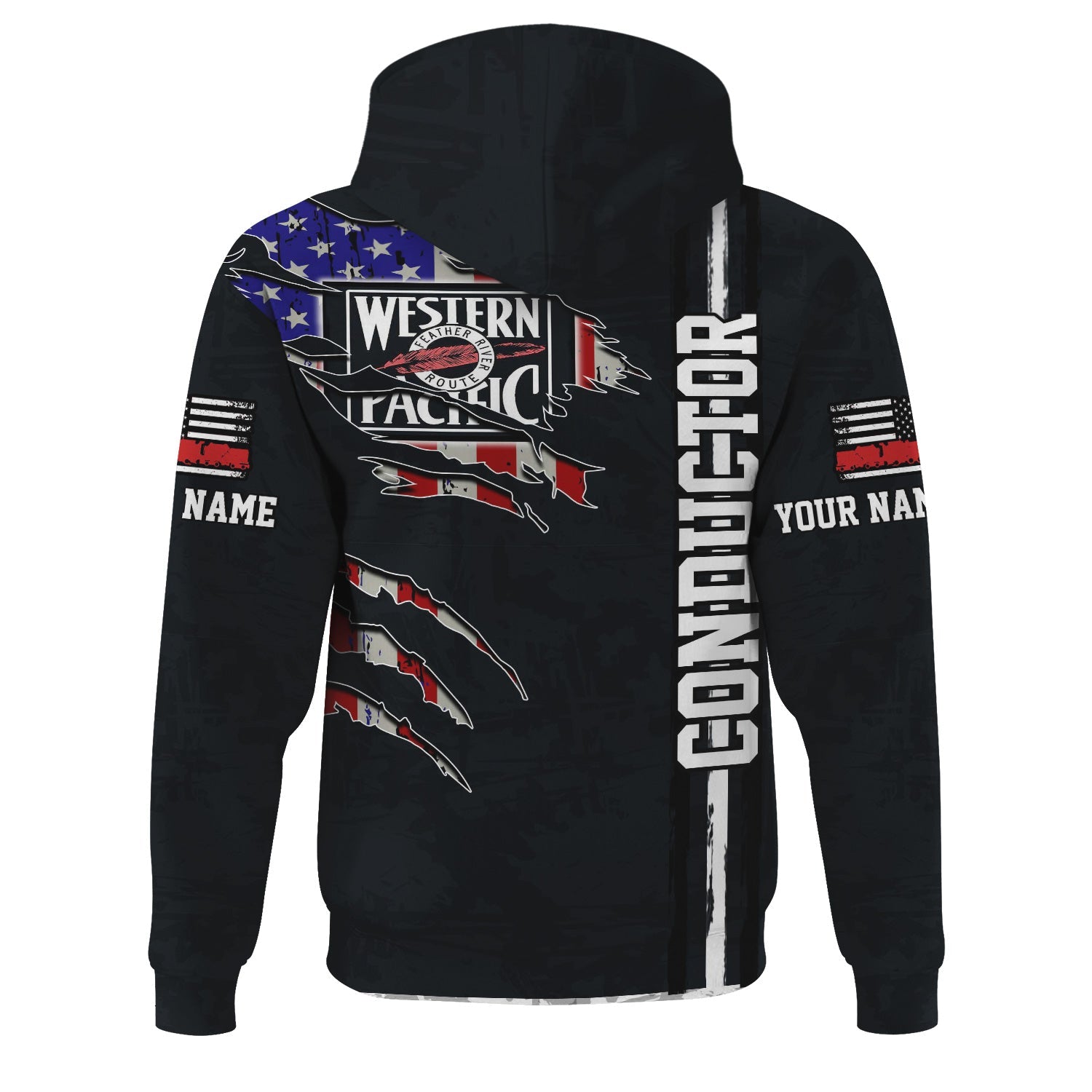 Railspirit Personalized Western Pacific Railroad Hoodie USA Flag Claw Art with Custom Job Train Zip Up Hoodie