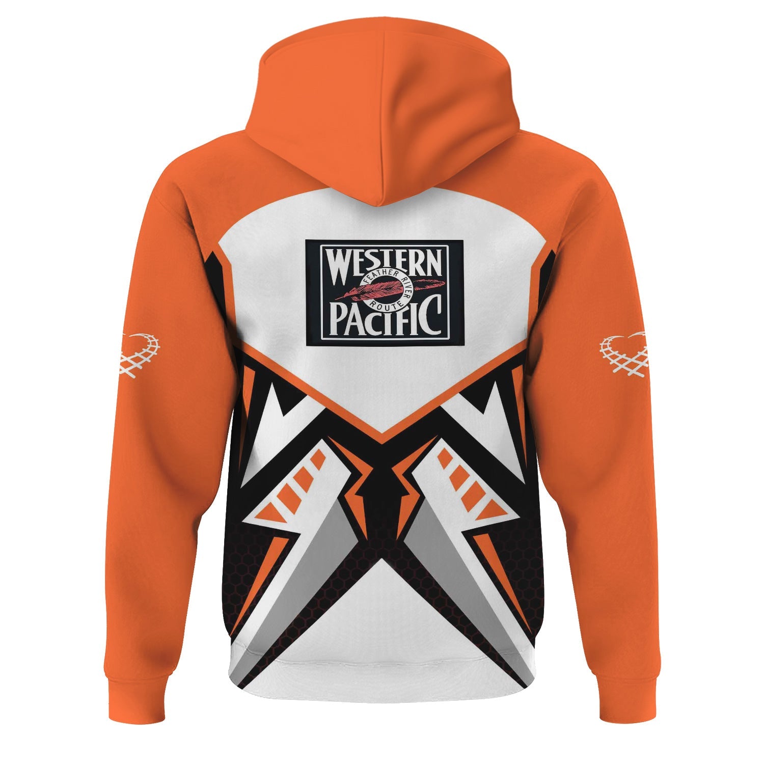 Railspirit Personalized Western Pacific Railroad Hoodie Vibriant Style with Custom Position Train Zip Up Hoodie