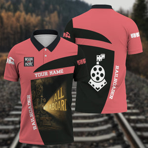 Railspirit Personalized Western Pacific Railroad Polo Shirt All Aboard Steam Train Movie Projector Style Shirt