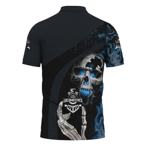 Railspirit Personalized Western Pacific Railroad Polo Shirt Flame Skull Design Train Shirt for Locomotive Fans