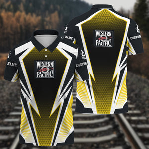 Railspirit Personalized Western Pacific Railroad Polo Shirt Lightning Graphic Style Shirt Gift Idea For Train Lover