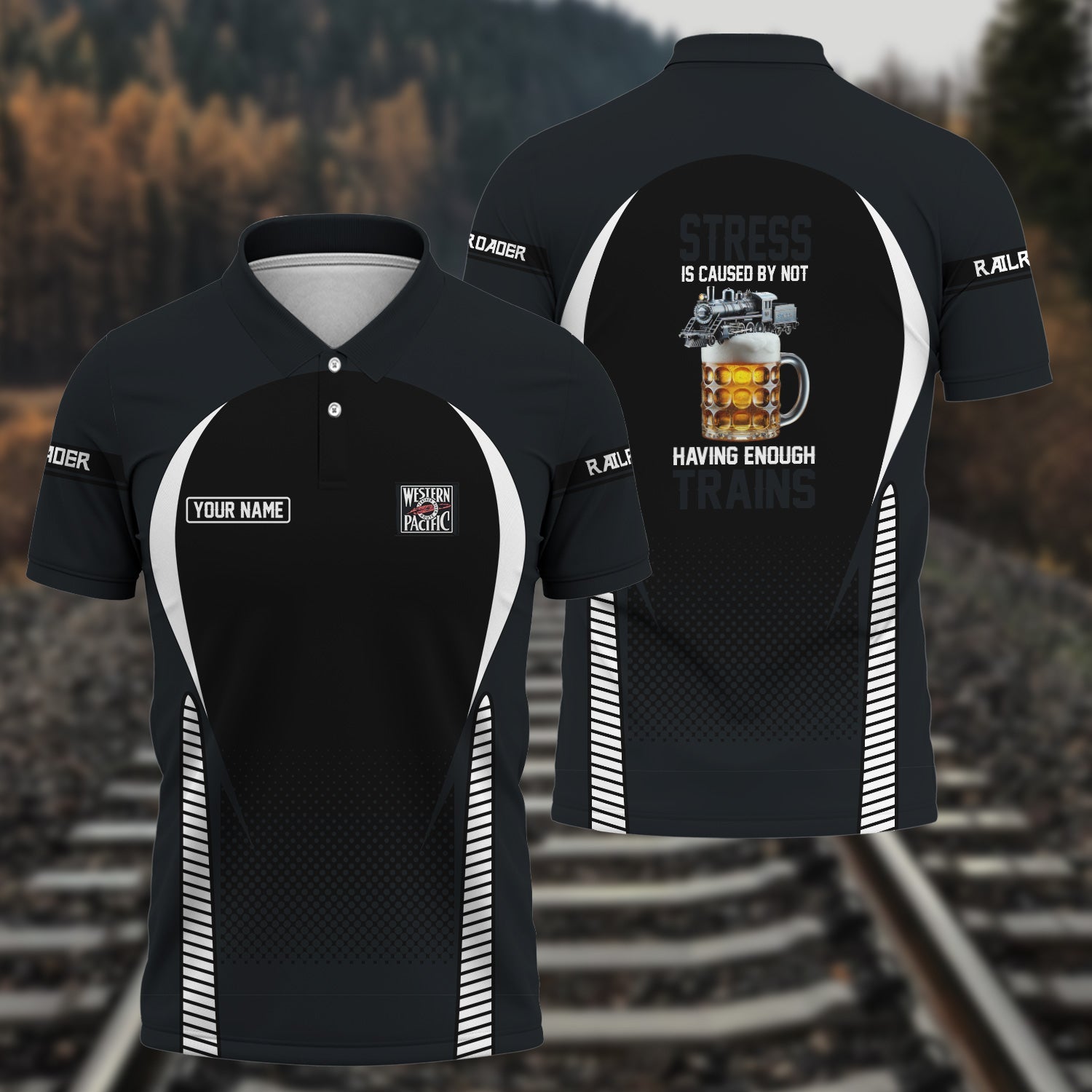 Railspirit Personalized Western Pacific Railroad Polo Shirt Stress Is Caused By Not Having Enough Trains Shirt All Over Print
