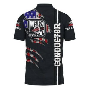 Railspirit Personalized Western Pacific Railroad Polo Shirt USA Flag Claw Art with Custom Job Train Shirt