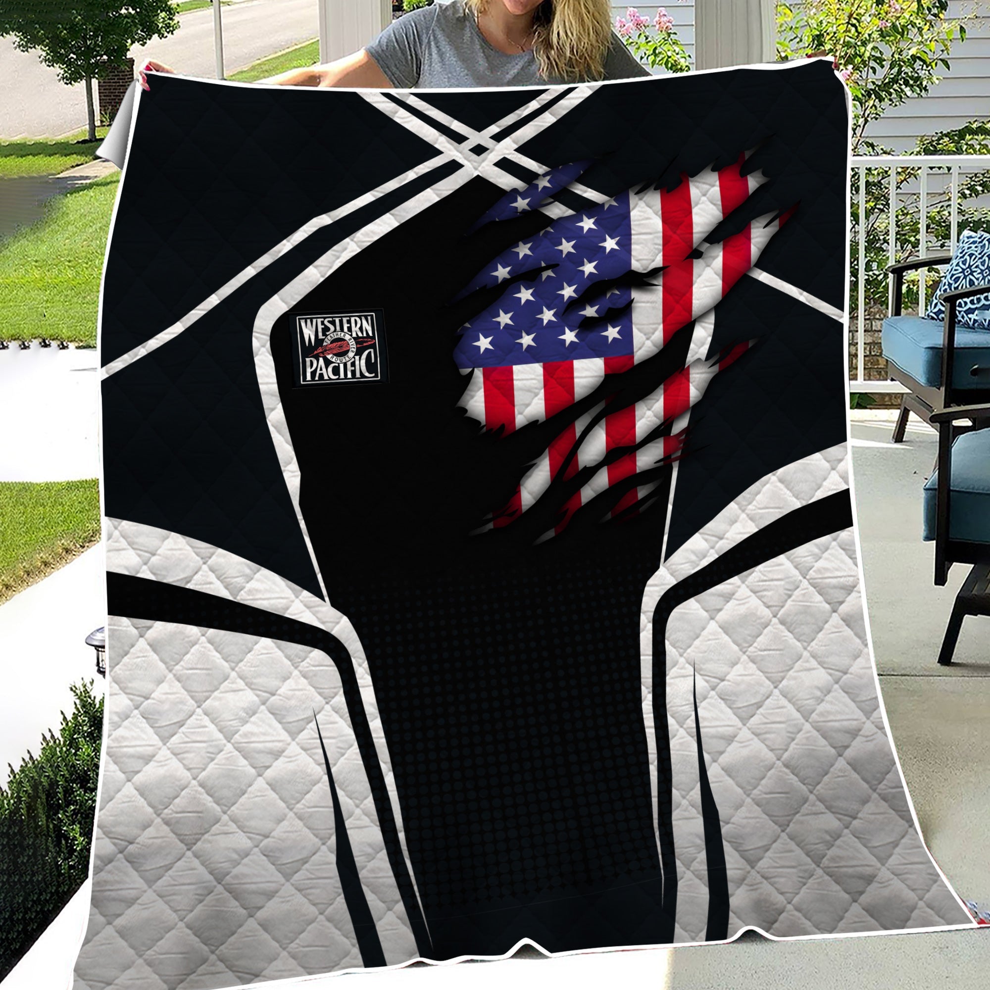 Railspirit Personalized Western Pacific Railroad Premium Quilts American Vintage All Over Printed Premium Quilts