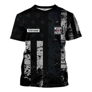 Railspirit Personalized Western Pacific Railroad T-Shirt Artistic Paint American Flag Style Train Shirt